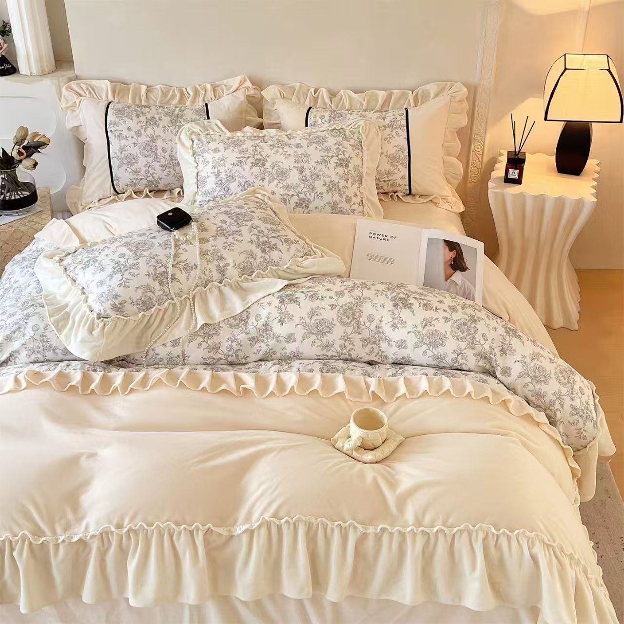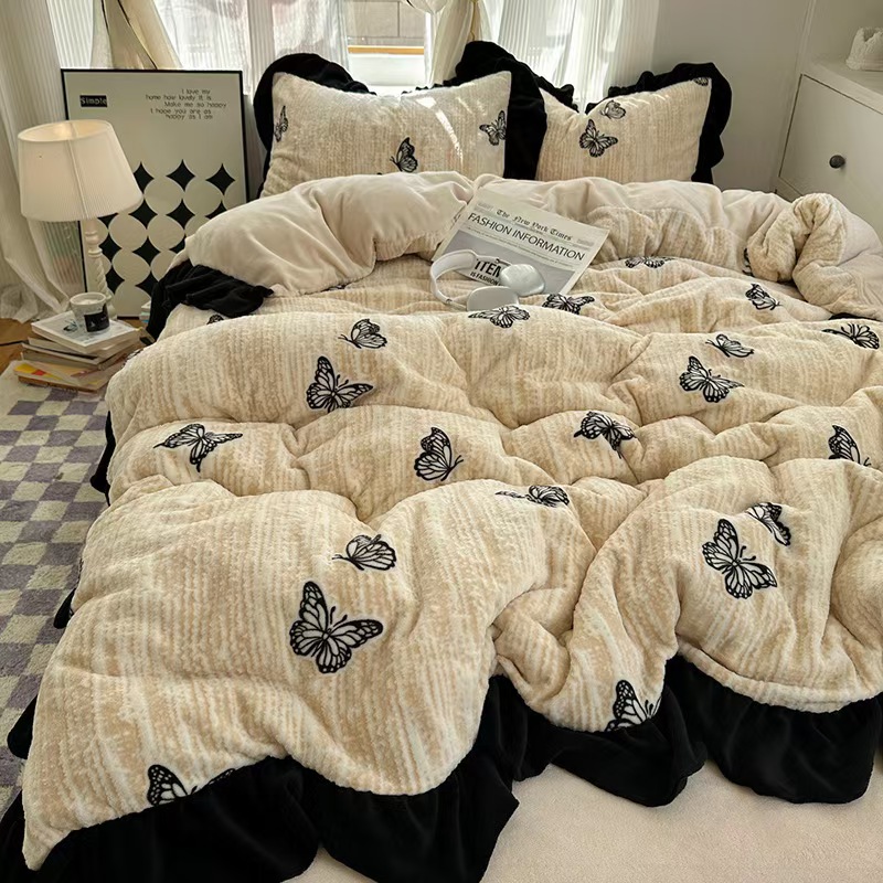 法式高克重牛奶绒四件套婴儿绒花边加绒保暖秋冬防静电刺绣床套 RH2奥裕