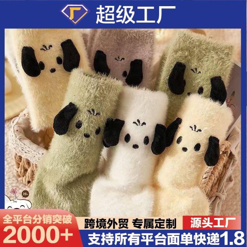 冬季水貂绒袜子女毛绒保暖地板卡通 10双
