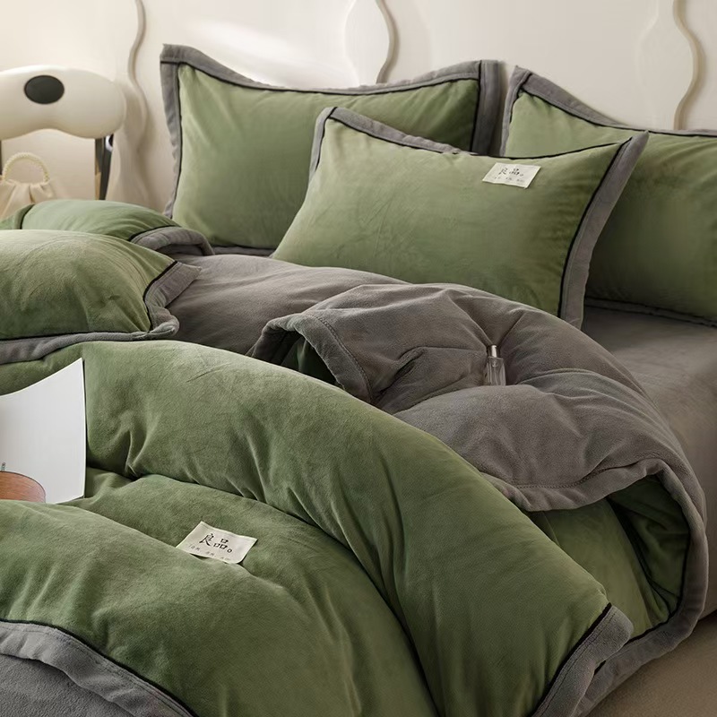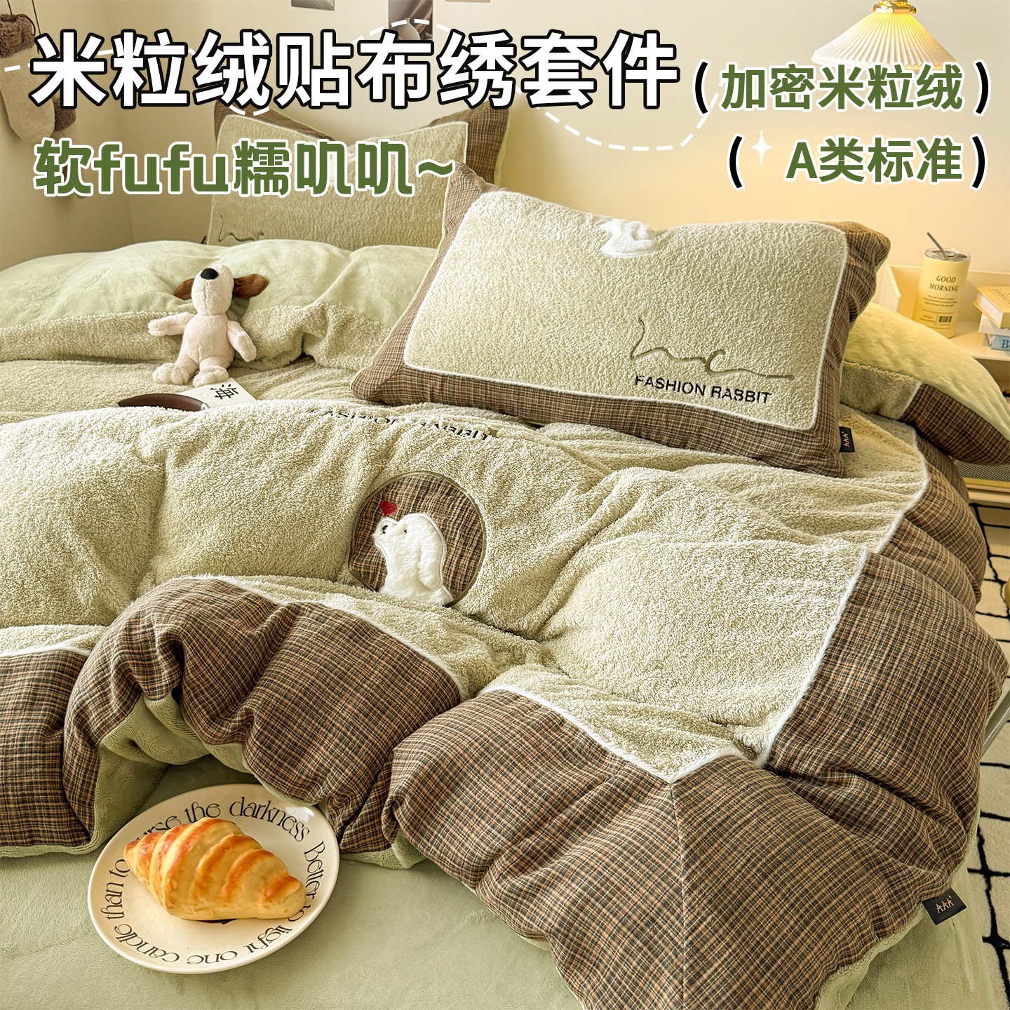 无印风冬季加厚牛奶绒四件套床上纯色双面绒被套 RH2MC