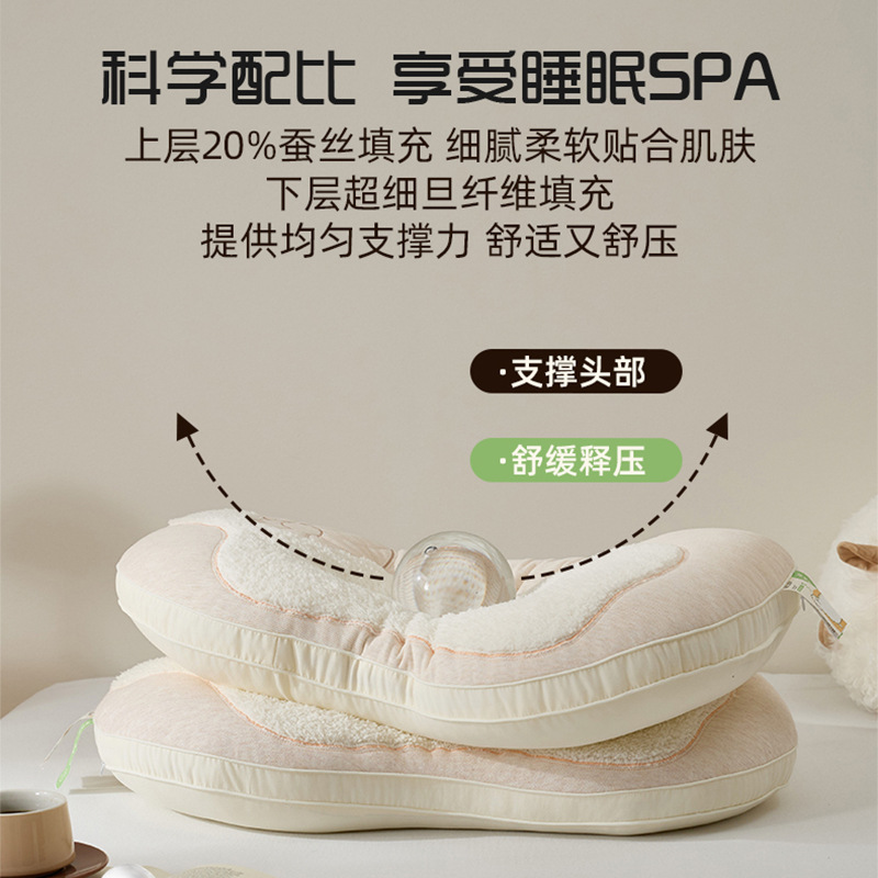 羊毛蚕丝枕头冬季枕芯护颈椎助睡眠单人家用成人枕头RH2