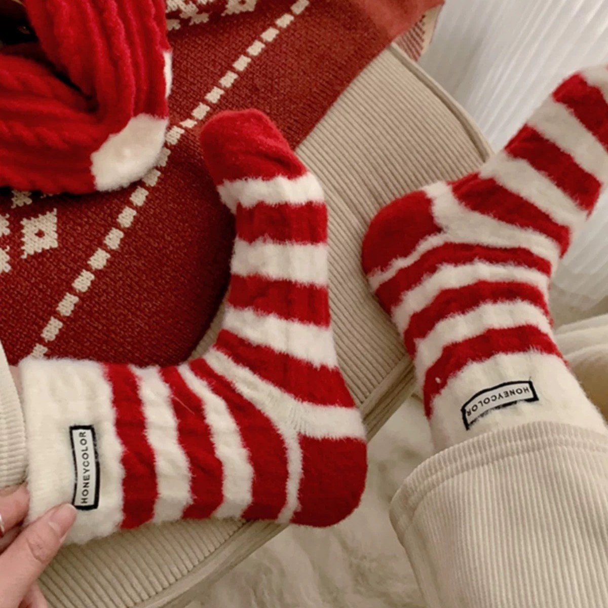 秋冬季红色本命年袜子澳绒保暖加厚加绒睡眠袜居家地板袜长筒袜女